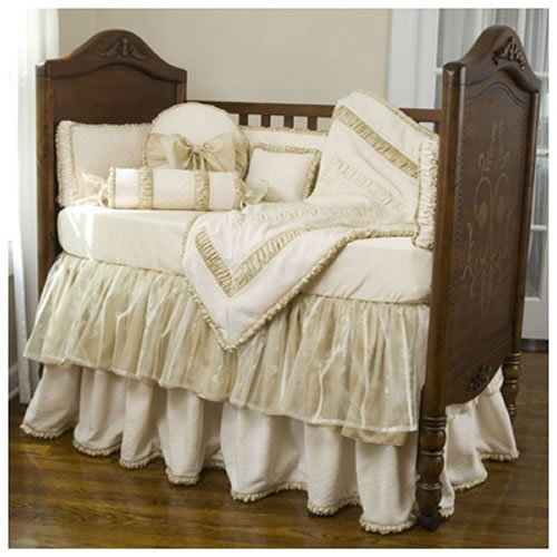 | Usually ships in 4 Weeks Green Frog Art designs furniture and bedding for parent's who want to create beautiful, nurturing environments for their children with items of exceptional quality and style. The five-piece crib bedding set includes a coverlet, bumper, sheet and two dust skirts. Additional sheets and decorative pillows are available separately. Sheets are machine washable. Bumpers, coverlets and decorative pillows may be hand washed or spot cleaned with mild, chlorine-free detergent. |